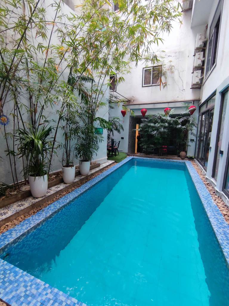 Första intrycket av detta hostel är att det är populärt. Fint med en liten pool inne i byggnaden vid baren, inte sett någon bada där ännu. Innan kvällen och mörkret föll tog jag en liten rundtur för att titta på alla skyltningar och saker som såldes, det var extra mycket nu inför nyår och de flesta hörn/gator var färgade med rött och guld (film på detta kommer längre fram)