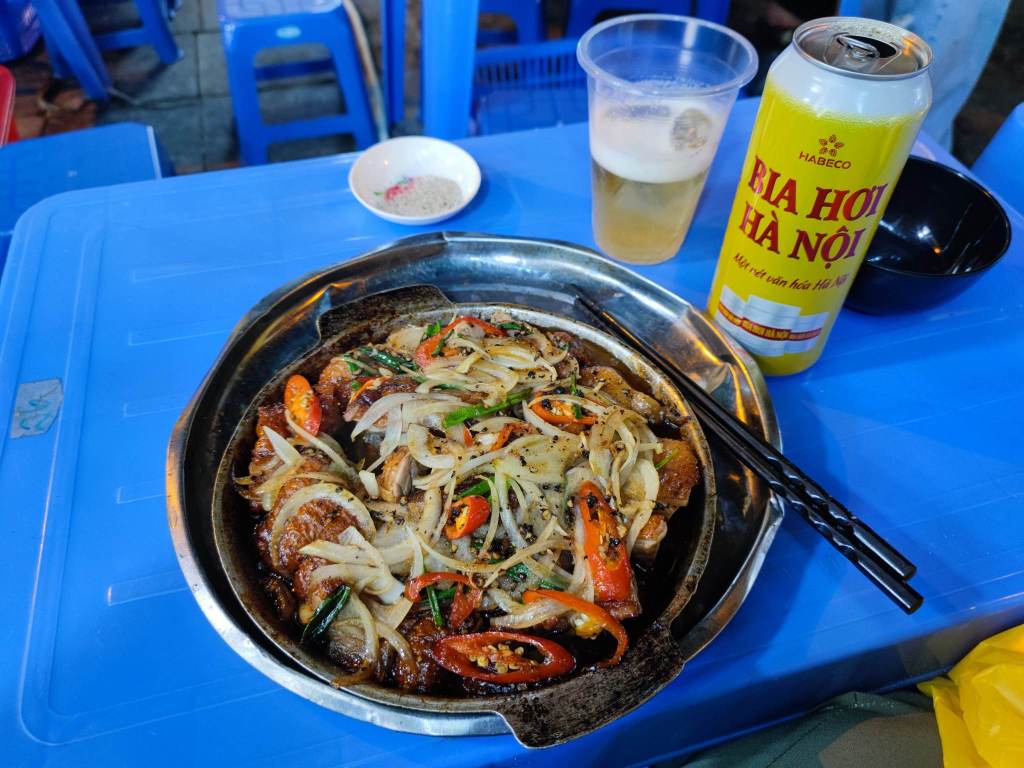 Tillbaka på Buffalo Hostel hann jag precis till ”free beer” mellan kl. 19-20. Efter att ha hämtat min gratisöl och satt mig vid ett bord fick jag snabbt kontakt med ett par från Nya Zeeland (Ruby och Liam) som också hade kommit till Vietnam idag.